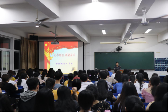 为纪念五四运动100周年,激励学生党员勤于奋斗,勇于担当,建功新时代,5月15日晚,经济管理系主任蔡敏在科教楼602为学生党员作题为《志高存远,砥砺奋斗》的主题党课。参加此次讲座的还有全体入党积极分子。