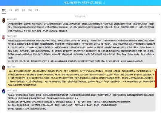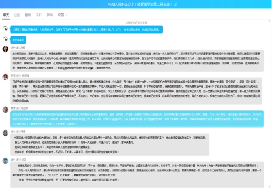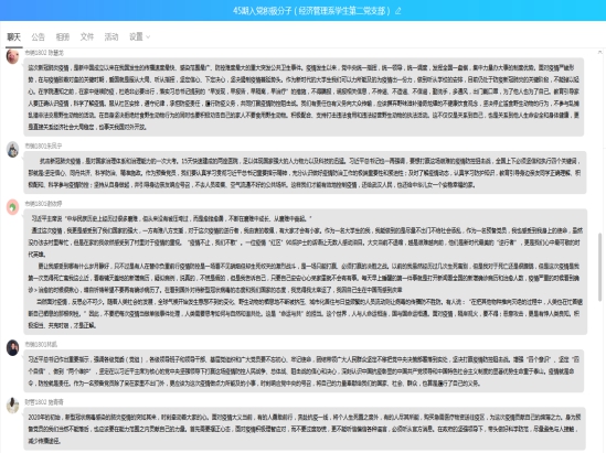 在交流环节,学生党员、入党积极分子就学习习近平总书记关于疫情防疫工作的重要讲话精神,结合自己实际情况先后进行分享。