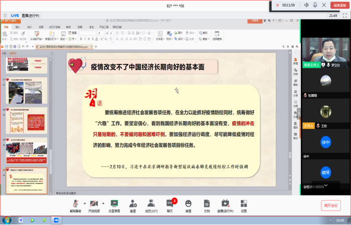 在罗立仪副院长讲完专题讲座后,学生科科长王昉在线上与经管系全体同学总结罗立仪副院长的讲座内容,并呼吁同学们在家疫情防范工作不能松懈,同时认真参与学校开展的线上教学,做到在家也不落下学习。