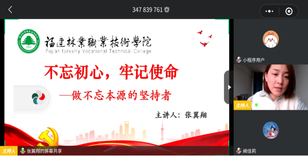 为强化“不忘初心,牢记使命”主题教育,深化教师、学生党员的责任担当意识,2020年4月30日下午,经济管理系学生第一党支部通过腾讯会议网络平台召开“不忘初心,牢记使命——做不忘本源的坚持者”主题党课。本次党课学习由张翼翔老师主讲,学生第一党支部全体教师党员、学生党员、入党积极分子参加。