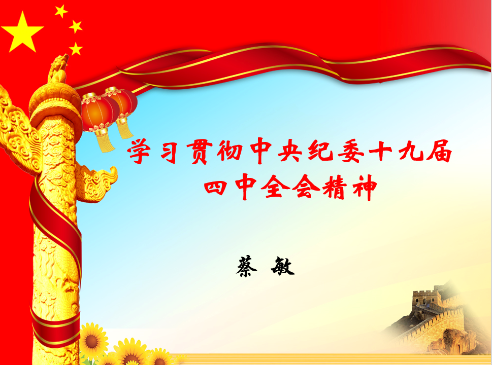 会上,蔡敏主任就习近平总书记在十九届中央纪委四次全会上的重要讲话精神及十九届中央纪委四次全会精神进行了传达。她强调,党的十九届四中全会是一次具有开创性、里程碑意义的重要会议,通过的《中共中央关于坚持和完善中国特色社会主义制度、推进国家治理体系和治理能力现代化若干重大问题的决定》,是坚持和完善中国特色社会主义制度、推进国家治理体系和治理能力现代化的政治宣言和行动纲领。党的十九届四中全会把监督工作、反腐败工作纳入国家制度和治理体系,作出顶层设计,体现了以习近平同志为核心的党中央对纪检监察工作的高度重视、殷切期望,为做好新时代纪检监察工作打开了新视野、部署了新任务,对推进新时代纪检监察工作高质量发展提出了新的更高要求。