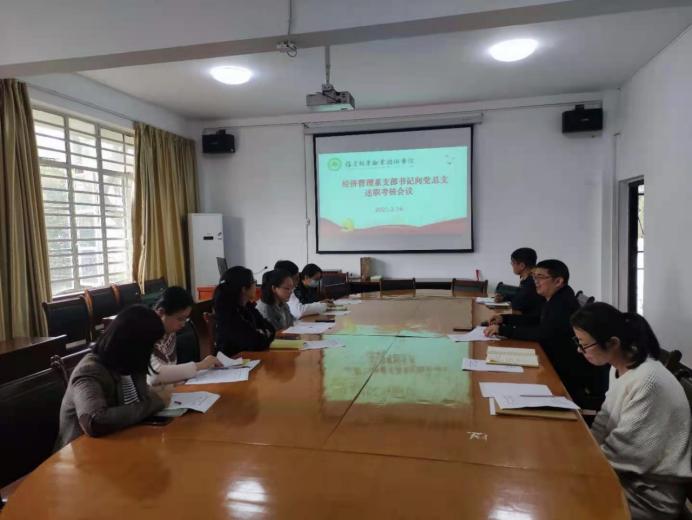 为深入学习贯彻习近平新时代中国特色社会主义思想,把党的政治建设摆在首位,进一步推动全面从严治党向基层延伸,促进基层党建全面建设、全面进步。经济管理系党总支于3月16日上午在经管楼408会议室召开党支部书记抓基层党建述职评议考核大会。本次党支部书记评议考核大会由系党总支书记谢福荣主持,院党委组织部指派艺术传媒系组织员作为代表出席,经济管理系没有授课任务的教工党员均出席本次大会。