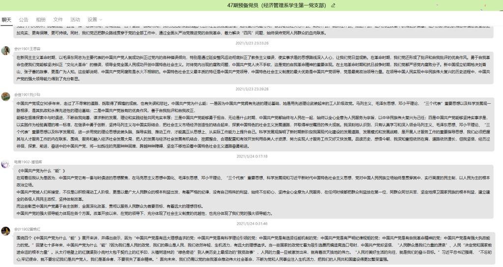 为迎接中国共产党百年华诞,积极响应学党史的号召,经济管理系学生第一党支部于2021年3月23日组织支部全体党员及预备党员线上共同学习了中央党校(国家行政学院)网络课程《中共党史专题讲座》的第一讲课程:中国共产党为什么“能”。