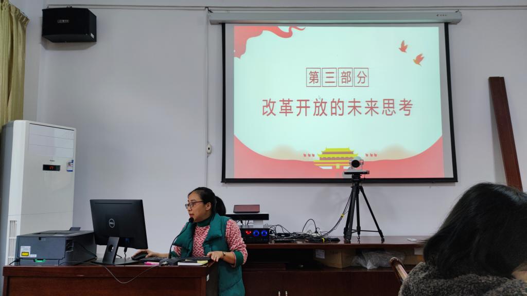 会上,支部书记吴淑秋同志传达了上级党组织关于十九届六中全会的文件,并对当前支部的发展状况做了简要的概述,通过党建示范校创建任务的指示要求:一党员一班级、一党员一协会、一党员一课题、一党员一赛项、一党员一门课等任务,明确了接下来支部党员的相关事宜,为全体党员指出了工作方向。同时,吴淑秋同志给党员们讲授了主题为《改革开放史》的党课,通过“改革开放的业绩与成就”、“改革开放成功的原因分析”、“改革开放的未来思考”三个部分,阐述了我国在改革开放后创造的伟大成绩,突出了共产党在治国理政上的先进性,全体党员细心聆听,并展开了深入的讨论。