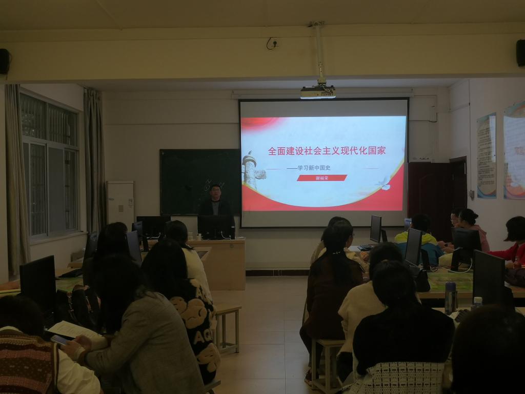 课上谢福荣书记从新中国史的基本脉络、艰难曲折中的初步探索、基本经验总结三方面,带领大家深入学习党史。