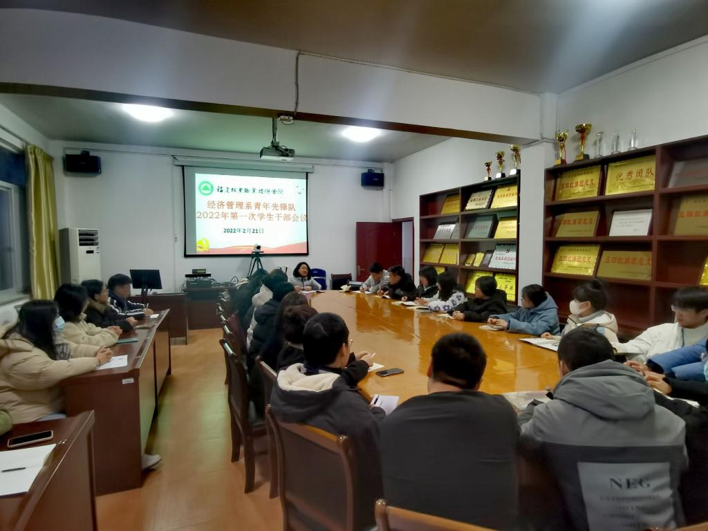 2022年2月21日晚7点,经济管理系青年先锋队于经管楼408召开了2022年第一次学生干部会议,本次会议由青年先锋队负责人张翼翔老师主持。