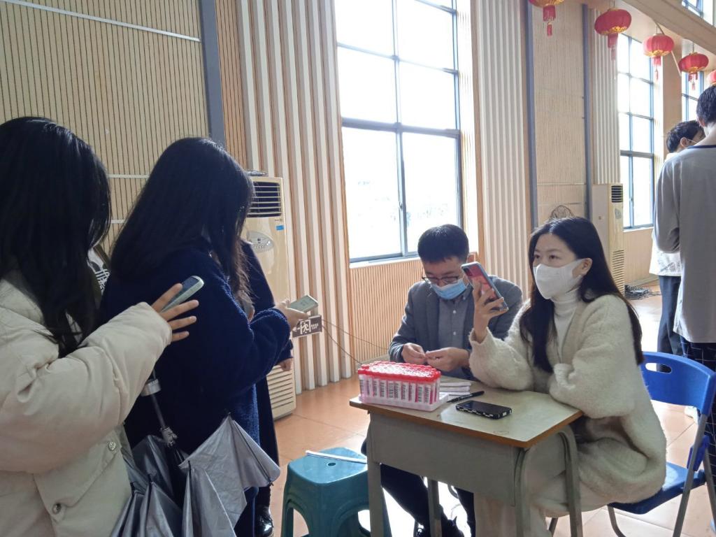 2022年12月3日下午,我院天麟校区组织全校师生进行核酸检测,经济管理系教师党员不畏严寒,积极奋战在核酸检测的各个工作岗位,充分发挥党员的先锋模范带头作用,为校园防疫筑牢防线。
