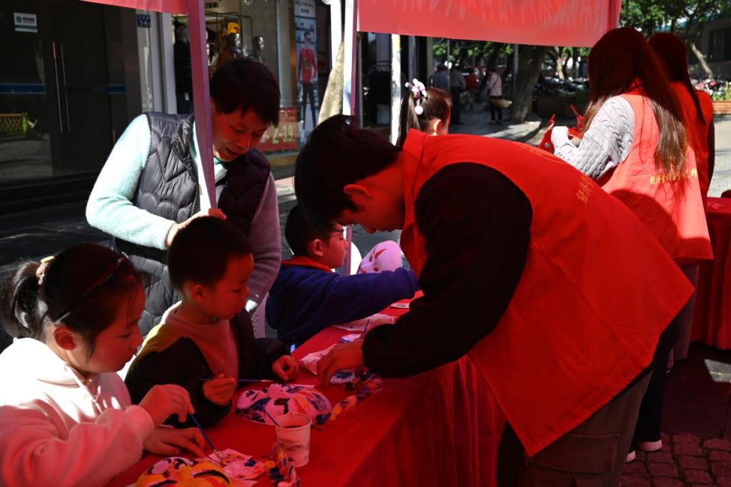 此外,青年先锋队的志愿者们还积极投身进传承非遗技艺活动中,他们不仅认真协助非遗技师们的工作,还为了使市民们有更好地体验非遗技艺,他们在一旁贴心引导市民进行操作,使市民们能够亲身体验与感受传统文化的魅力,增强文化自信。