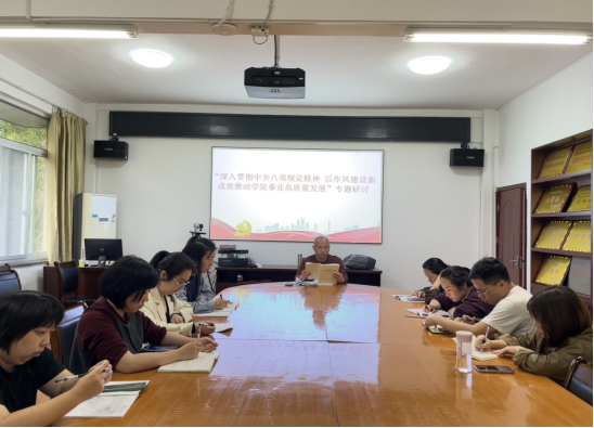 在学习传达《中央八项规定实施细则》后,与会人员结合深入贯彻中央八项规定精神学习教育,紧扣岗位职责和工作实际,以作风建设新成效推动学院事业高质量发展开展专题研讨。