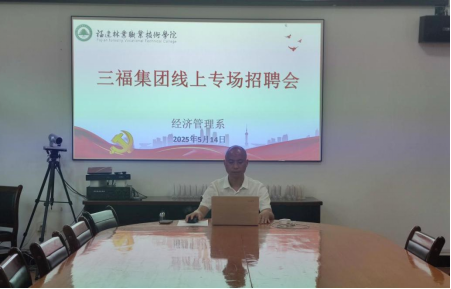 5月14日,福建省三福集团线上专场招聘会在天麟校区经管楼408会议室成功举办。经济管理系党总支书记陈剑勇出席并主持本次招聘会。本次招聘会吸引了2025届毕业生及2026届准毕业生的积极参与,线上互动氛围热烈,取得良好反响。