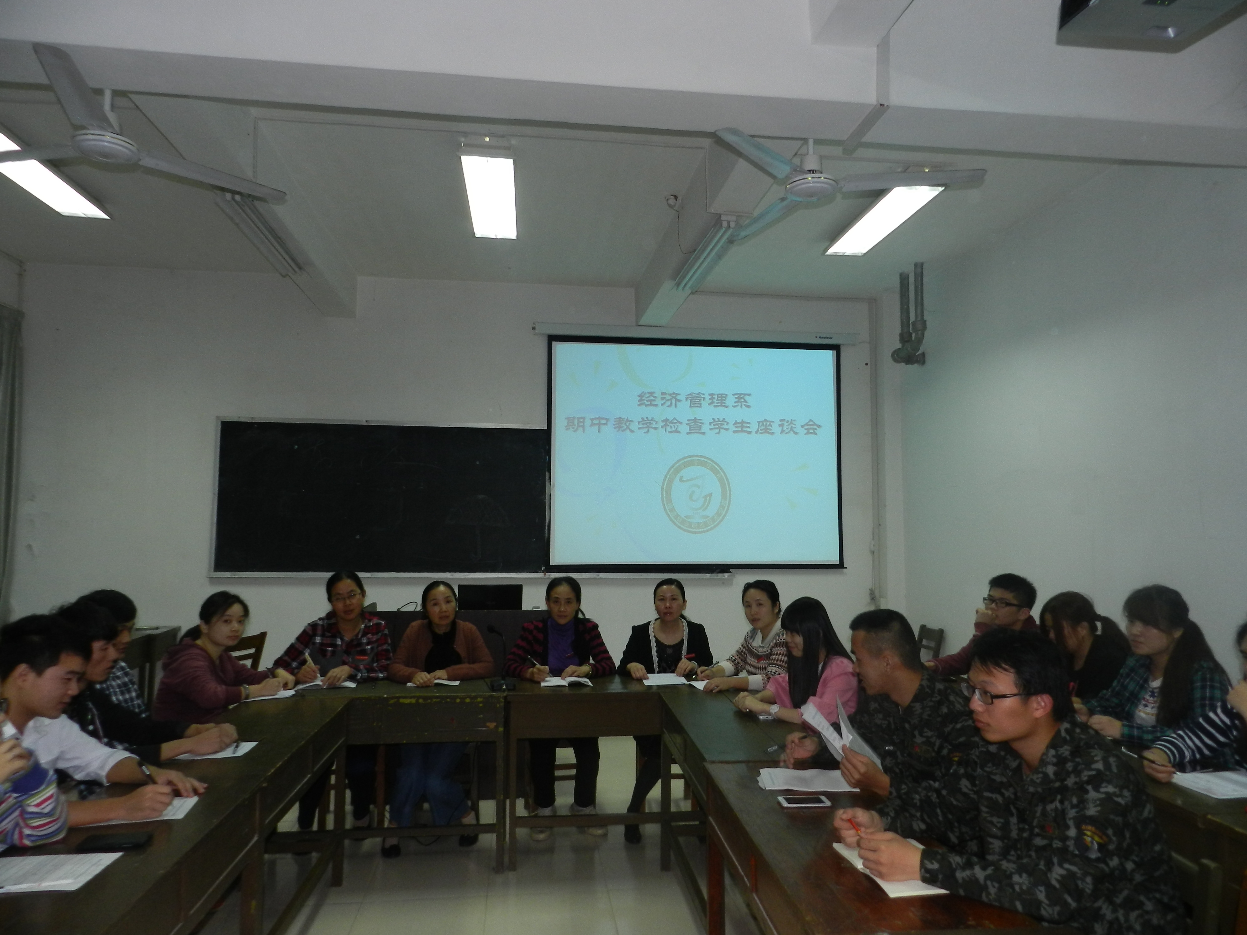 为了深入实践科学发展观,了解教学情况,进一步加强和优化教学管理,提高教育教学质量,我系开展了期中教学检查,并于2014年11月4日和11月5日分别召开了教师座谈会和学生座谈会。在教师座谈会上,与会人员畅所欲言,对学生出勤、学习表现、课堂教学效果和实践教学效果进行评价,并针对专业课程的设置、学生管理、教学设备等问题进行了反馈,同时提出了很多建设性的建议;学生座谈会上,各班学习委员和班长在收集本班同学意见后,就教师授课内容、教学方法、教学进度、课堂纪律、课程的安排等情况进行了反馈。
