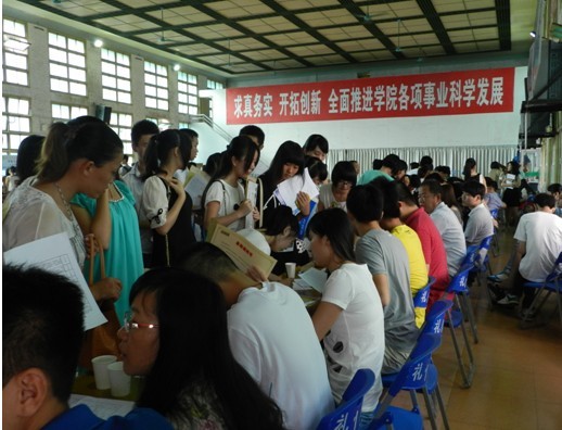经管系精心组织安排,各新生班主任及其助理、经济管理系志愿者及时到位,安排有序,为新生注册报到提供了周到的热情的服务。在车站,接车老师和志愿者们热情迎接,及时沟通,保证新生及其家长及时坐上校车;在新生报到咨询处,有关人员耐心地解答着新生和家长们的问题;在报到现场,学长学姐们为初进大学校园的学弟学妹们解答疑问、引路、提行李,办理入学登记,新生注册登记、物品发放等环节有条不紊地进行着;同时报到现场为新生及其家长精心备好饮用水、防暑用品及座椅,为新生及家长们提供了休息空间。热情周到的服务赢得了新生及其家长的肯定,许多家长表示把学生放在我系,可以放心。