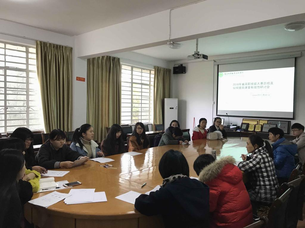 2017年12月27日下午,我系财经教研室在实训楼408会议室召开了2018年省高职技能大赛总结及“如何提升课堂教学的有效性”主题研讨会,会议由财经教研室主任高蓉老师主持。会议邀请了财经教研室的教师和我系2018年高职组会计技能和银行业务综合技能的竞赛学生共同参加。
