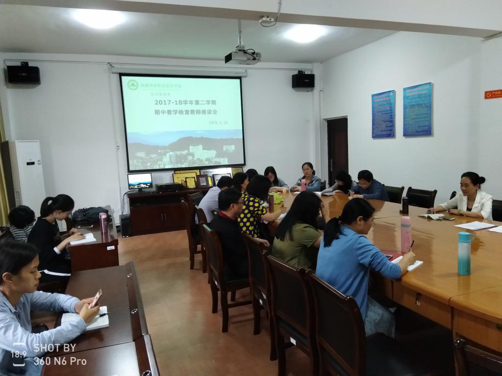 4月26日下午,经济管理系在系会议室召开了2017-2018学年第二学期期中教学检查教师座谈会。经管系主任蔡敏、各教研室主任、经管系全体教师及辅导员参加会议。