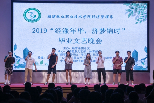 笑语欢声,吹响毕业号角;载歌载舞,镌刻离别思念,6月18日晚上七点半,由系团总支主办、系文艺部、体育部承办、系秘书部、学习部、社团部承办的“经漾年华,济梦锦时”经济管理系2019毕业文艺晚会在天麟礼堂拉开序幕,经管系党总支书记谢福荣、经管系主任蔡敏、经管系学生科长王昉、经管系黄雪媛、胡斌、叶丽丽、陈翔等老师出席本次晚会,同时,晚会特别邀请了新疆昌吉州“绿网”培训班的学员参与。