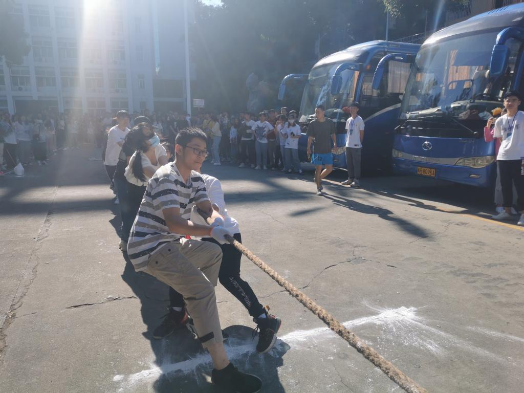 疫情在校期间,为了丰富同学们的业余文化生活,增强同学们体育锻炼的意识,形成良好的体育锻炼的习惯,提升身体的综合素质,丰富新老生的课余生活。2020年11月1号下午2:00,经济管理系在天麟校区礼堂门口开展第十一届“畅享运动乐趣,弘扬传统体育”新老生拔河比赛。