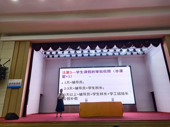 系学生科科长王昉老师与新生辅导员林淋老师都出席本次新生入学教育讲座,为新生们讲解关于团务知识、学生会与社团介绍、校纪校规与学生管理等方面,让新生同学们更快地融入并适应大学学习生活。