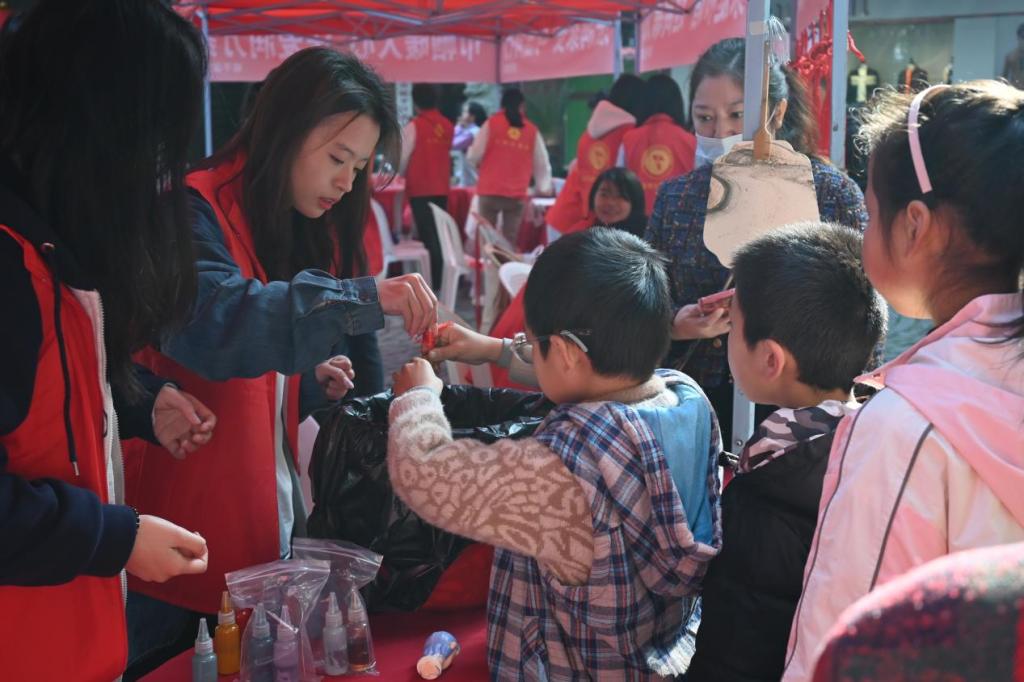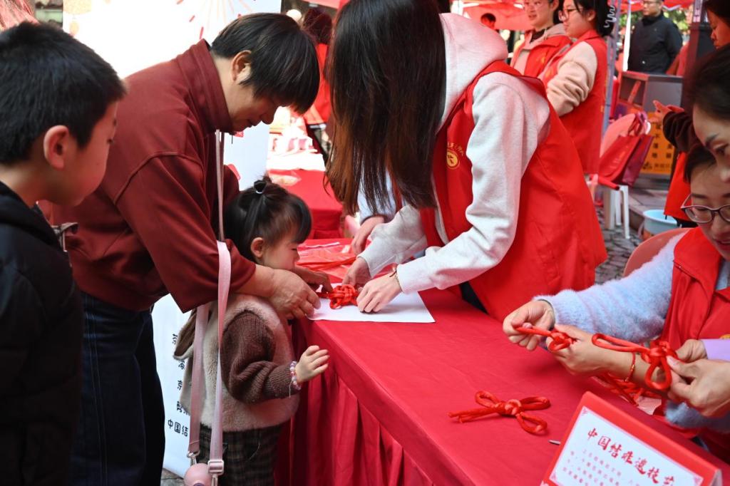 此外,青年先锋队的志愿者们还积极投身进传承非遗技艺活动中,他们不仅认真协助非遗技师们的工作,还为了使市民们有更好地体验非遗技艺,他们在一旁贴心引导市民进行操作,使市民们能够亲身体验与感受传统文化的魅力,增强文化自信。