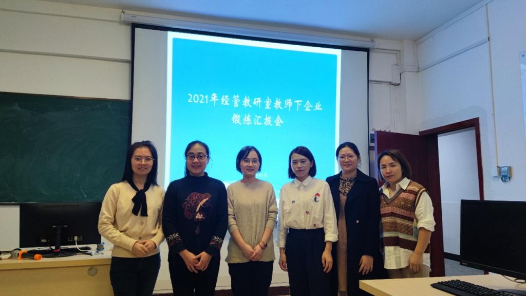 利用暑期时间,经管教研室分别派施莹莹、林丽金老师等14位教师参加下企业实践。返校后分别做汇报,分享自己的所学所感。会上施莹莹、林丽金两位老师精心准备,从企业文化、实践锻炼过程、收获体会、工作建议等方面依次作了暑期实践锻炼成果汇报,与会教师认真聆听了汇报并进行了现场交流。