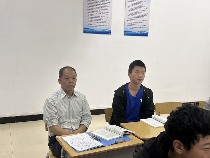 在江南校区教学楼305教室,刘文开听取马克思主义学院教师苏朋朋为智能控制技术2403、工业机器人技术2401班学生讲授的“思想道德与法治”课。听课过程中,他认真记录了教师的授课内容、教学方法和教学效果,细心观察同学们的精神面貌和学习状态。