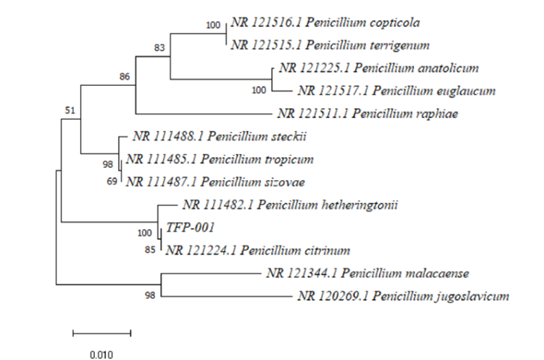 Fig. 3 Phylogenetic tree based on ITS sequences of strain TF1.