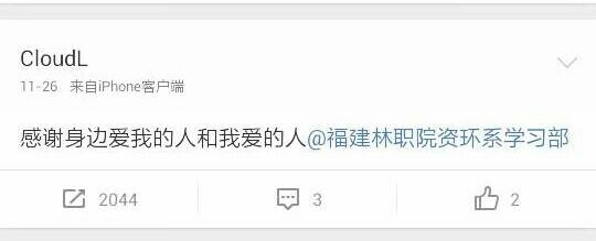 2014年11月21日,我院资源环境系学习部举办了“爱在微博——爱就大声说出来”微博感恩活动。