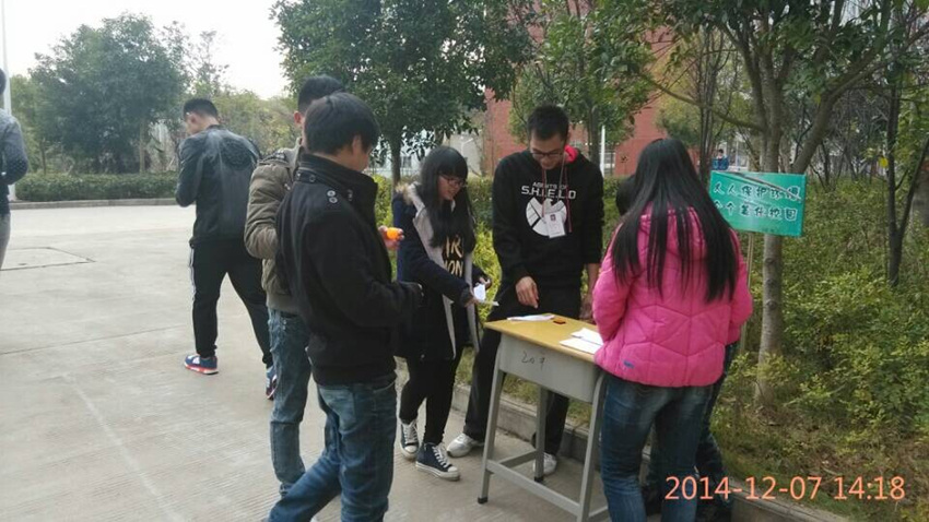 为响应共青团中央、全国学联联合教育部、国家体育总局开展的大学生“走下网络、走出宿舍、走向操场”主题群众性课外体育锻炼活动的号召。资源环境系学生会、助发委于12月7日下午在我院江南校区中心广场举办“三走”活动之第六届校园吉尼斯大赛。