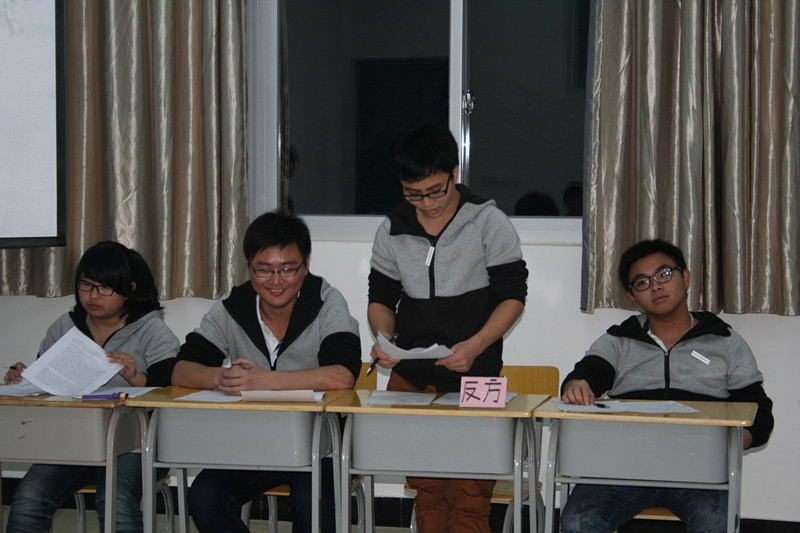 为丰富同学们的课余生活,活跃校园文化气氛,培养同学们的语言交际和临场思维应变能力。学习部举办“金叶子杯”辩论赛。3月20日19时30分,“金叶子杯”辩论赛复赛在实训四402和404举行。各部门部长及学生会主席、办公室主任作为评委嘉宾莅临了本次辩论赛。