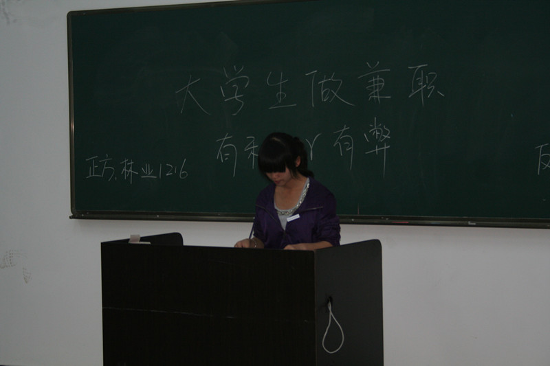 复赛由林业1216对阵林业1217,食品1203对阵园艺1211他们的辩题是“大学生做兼职有利还是有弊”。正所谓初生牛犊不怕虎,基础学院的辩手们妙语连珠,滔滔不绝。辩手们精准的论证博得场下阵阵喝彩。最后,林业1216和食品1203进入决赛的对决,林业1217成为本次辩论赛的三等奖。