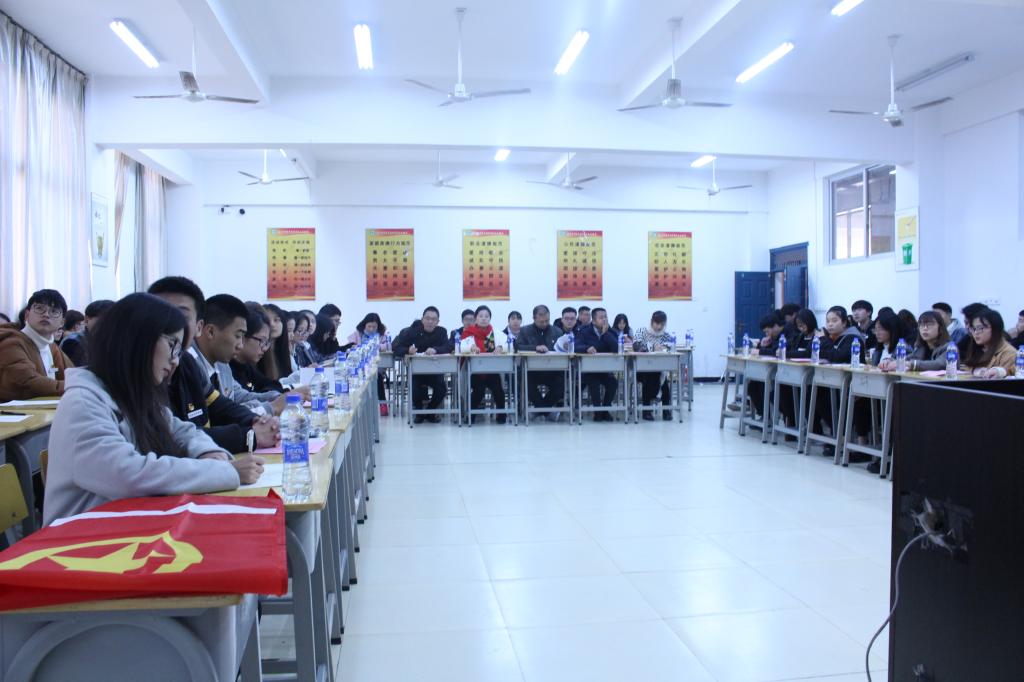 12月19日15点,由林业职业技术学院团委主办,林学系团总支、林学系食品1609班团支部承办的“践行新思想,拥抱新时代”主题团日活动在实训四310拉开帷幕, 南平市团市委谷国海书记、院团委副书记李霞老师、林学系辅导员以及各系主席团成员、组织部负责人等到场参会。