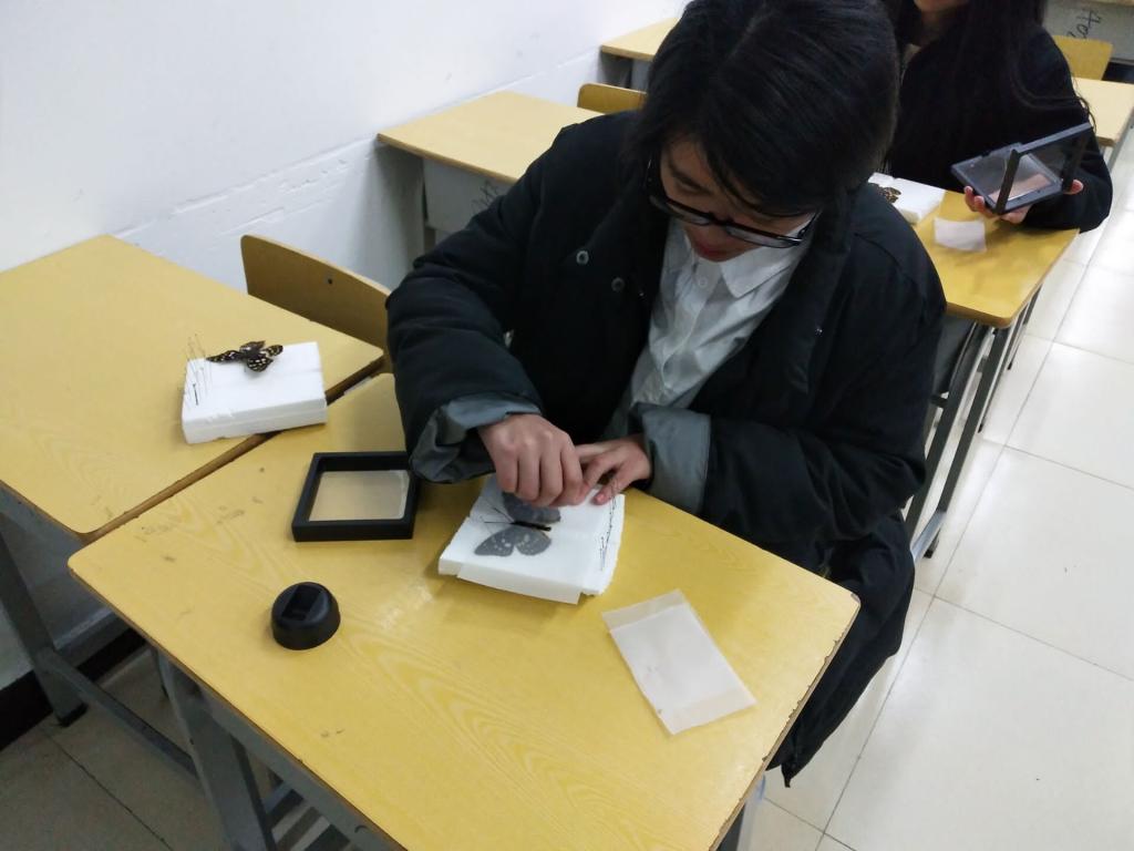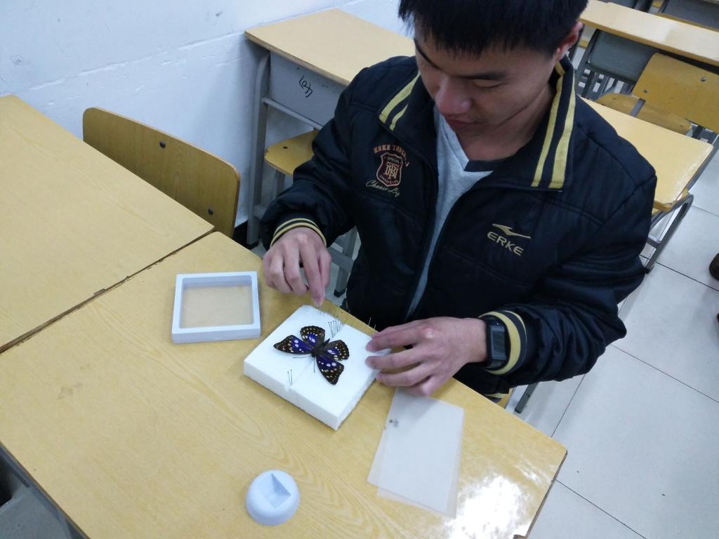 2017年12月22日晚,由林学系团总支、学生会分会主办,林学系社团部昆虫爱好者协会承办的昆虫文化节在实训四407举办。本次文化节主要围绕着蝴蝶标本的制作进行,制作蝴蝶标本的过程分为吸水、放松关节、扎针、上板、定翅、展翅、下板等七个步骤,最后移至标本盒。制作的过程中,同学们遇到了各种困难,都努力克服完成。同学们在工作人员指导操作的同时还了解了不少昆虫的相关知识。一份精美的蝴蝶标本完成后同学们的喜悦感油然而升。