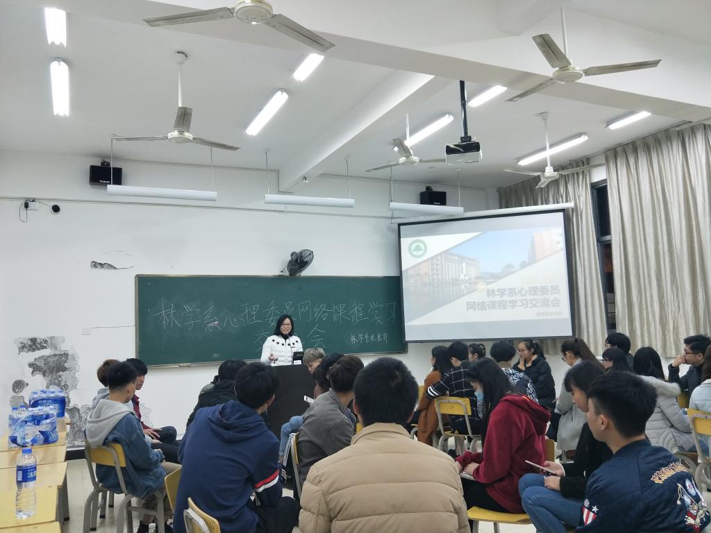 2018年1月2日,由林学系团总支、学生分会主办,林学系纪检部承办的心理委员网络课程学习交流会于实训四312展开。本次交流会很荣幸的邀请到了心理咨询中心的陈红英老师,系部辅导员王梦妮、罗勇、吴慧敏以及各班级心理委员积极参与。