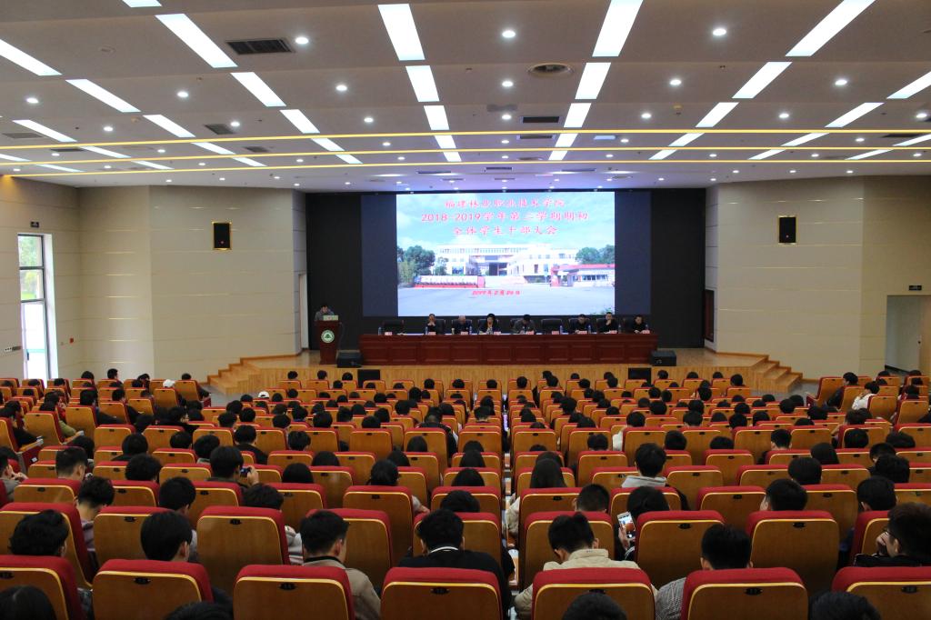 2019年2月27日2点半,为了加强学生组织建设,提高学生干部思想政治素质和工作能力,我系积极组织学生干部参加图书馆报告厅召开的学院学生干部期初大会,旅游管理专业魏金海同学带领学生干部宣读《学生干部自律公约》,同时与会人员认真听取各位老师们的发言,大会共进行六项议程,同学们受益匪浅。