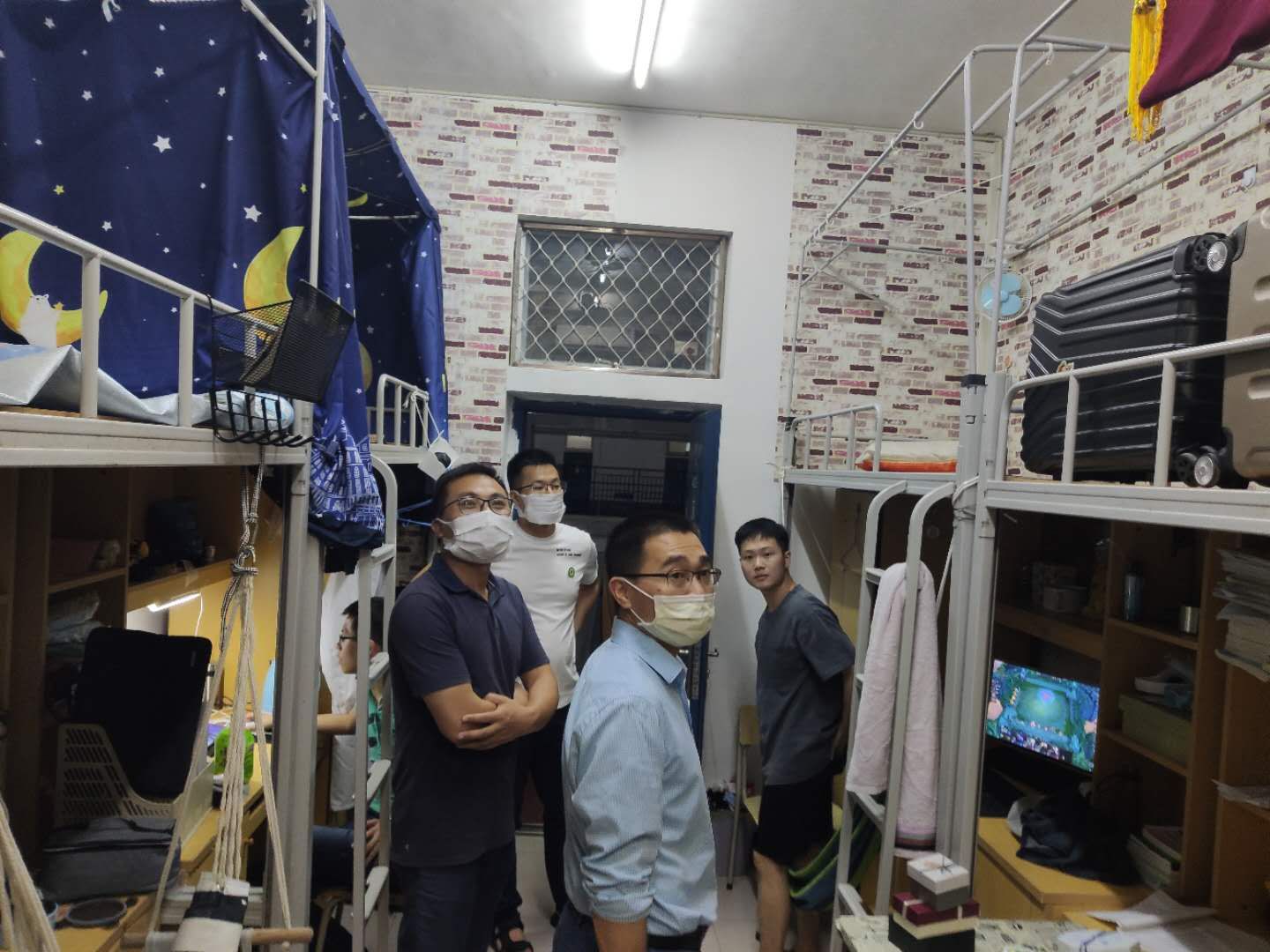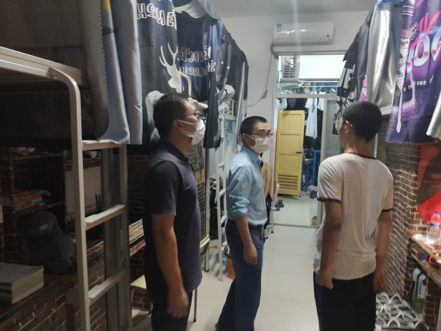 学生返校当天晚上,系部领导和辅导员走访返校学生宿舍并检查宿舍卫生情况,指导学生科学防护。