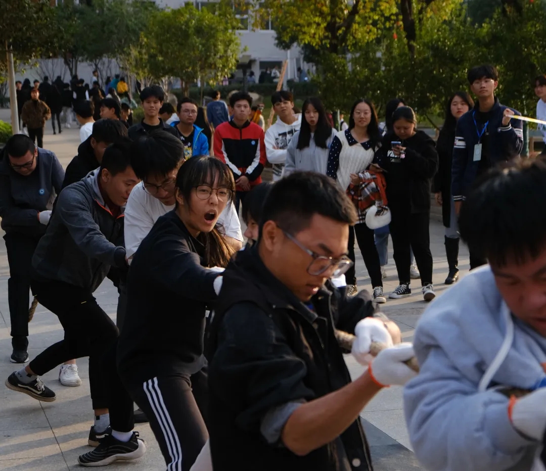 参赛队员有十个班级,各个班级拿出自己的最强比赛阵容,齐心协力,勇夺第一。当裁判的哨声响起,参赛选手们紧握着长绳,拼尽全力的往后拉,表情上都写满了用力,班级的同学们也在旁边呐喊助威,旁边同学的加油声,呐喊声此起彼伏,将比赛气氛推向了高潮,裁判的哨声响起,获胜的队伍们相拥分享着喜悦的心情,失败的班级在赛后总结本次的经验,想要取得下次的胜利。