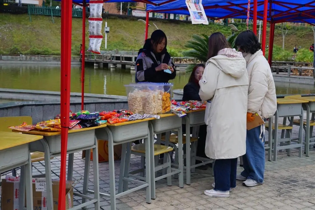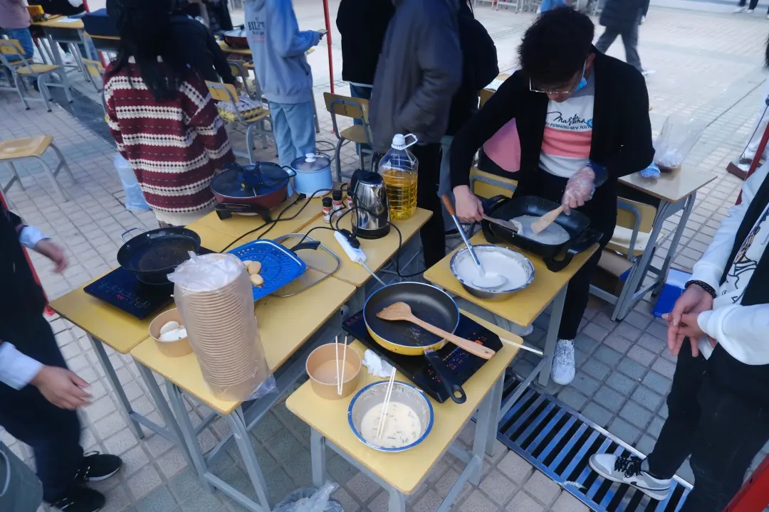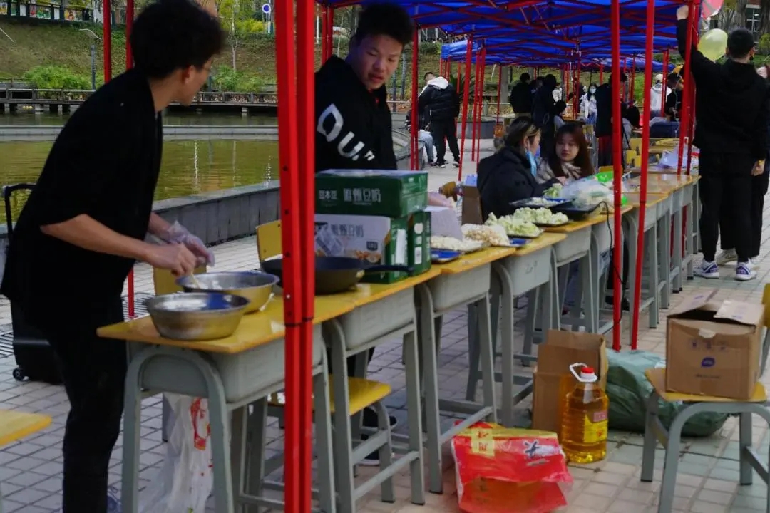 “芋泥啵啵奶、雪花酥、钵钵鸡、红糖糍粑、关东煮。每个摊位前都排着长长得队伍,翘首企盼美食节到来的同学们迫不及待地来到现场,身心放松地享受这一场饕餮盛宴。