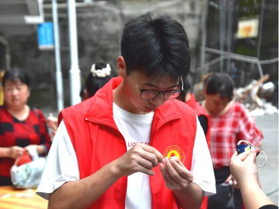 制作端午香囊,材料分发之后,社区阿姨们向“小林员”们讲解了香囊制作的具体步骤。“小林员”们在社区阿姨的指导下,缝制和穿线搭配后,图案精美、色彩艳丽的香囊展现在眼前。