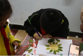 被风吹落在校园、马路上的树叶,大多数情况下都是进入垃圾桶里。但是在林学系志愿者的帮助下,孩子们将这些树叶变成一幅幅精美的图画、一张张精致的书签。