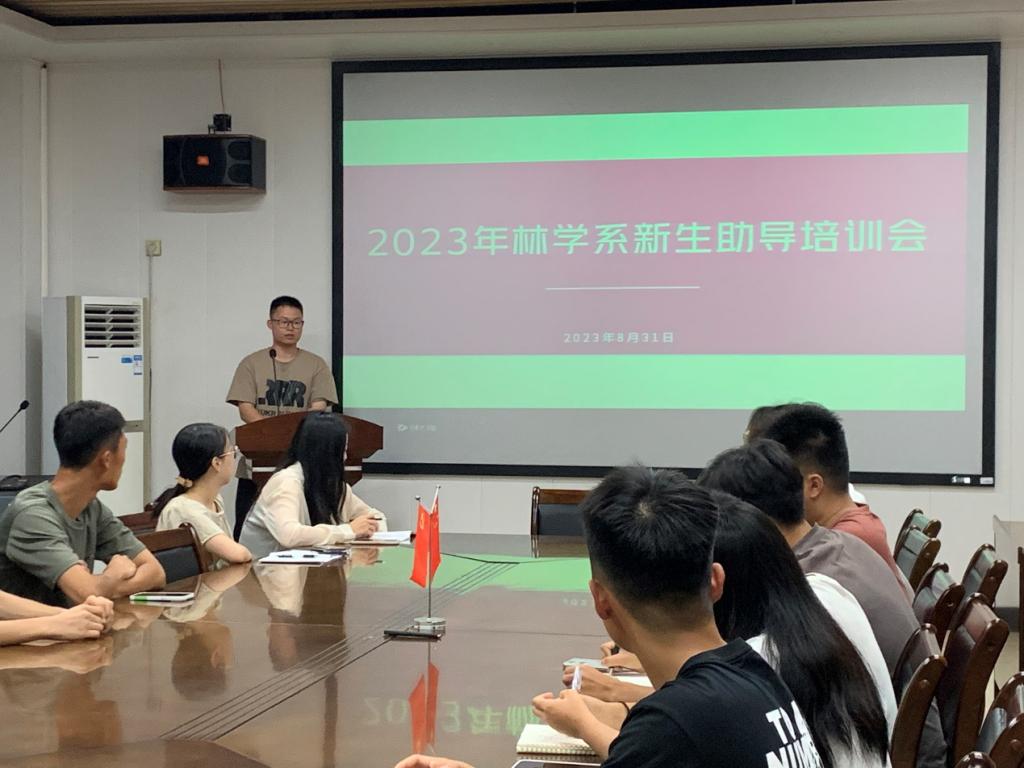8月31日晚,林学系召开2023级新生助导培训会。林学系党总支书记傅成杰通过分享自己与助导之间的故事,让同学们深深的认识到助导的重要性。并对助导提了三点要求:一要认真履行责任,增强内心的责任感;二要品学兼优,作风正派,公平公正开展工作,从大局出发,以班级整体利益为主;三要不断提升自身的能力建设,更快适应新生助导的身份,认真完成每一项工作,助力我系迎新工作顺利完成。