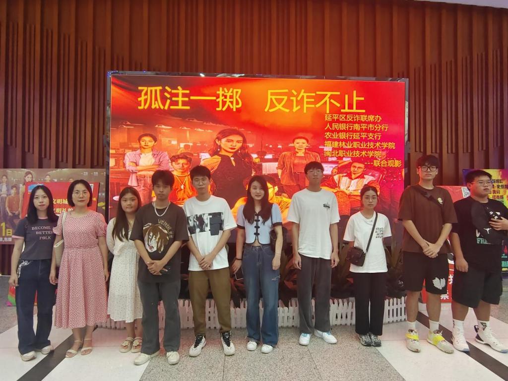 为深入贯彻落实全民反诈精准宣传的工作要求,进一步加强对学生防范电信网络诈骗的宣传教育,提升同学们识骗防骗技能,增强同学们自我保护能力,确保学生身心健康和财物安全,建设和谐平安校园。9月14日,福建林业职业技术学院联合延平区反诈联席办,举行《孤注一掷》观影活动,2023级新生及新生辅导员参与。