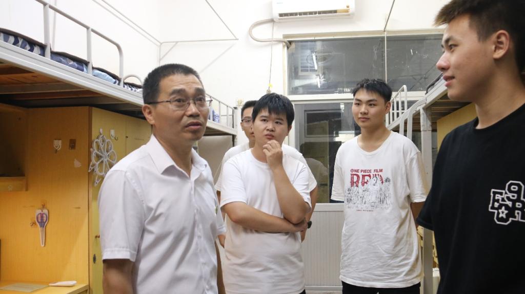 八月终,九月启,又是一年迎新季。为进一步了解林学系2023级新生入校第一天的情况,帮助新生尽快适应大学生活,2023年9月8日晚19:30,院党委委员李肇锋副院长、林学系领导班子成员及新生辅导员共同走访2023级新生宿舍,了解他们对学校的初印象及适应情况,向他们送去暖心的关怀和问候。