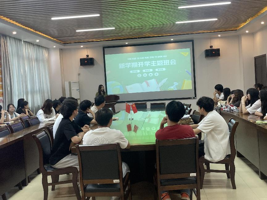 新的学期充满新的希望,为了能让学生提高自我认识、管理好个人情绪、调整生活作息、规范在校学习生活习惯,尽快适应校园生活,确保学生快速进入新学期,2023年9月10日,张雨欣辅导员开展了以“新学期、新面貌、新征程”的主题班会。同学们纷纷表示要明确目标,以高昂的斗志迎接新学期。新学期,新气象,新目标,新征程。相信通过此次班会,同学们都会向着自己心中的光,以梦为马,不负韶华,怀抱着自己的目标,成就自己的青春。