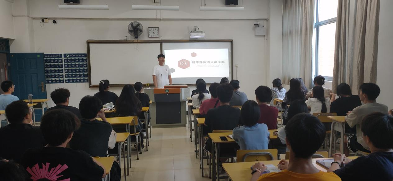 2023年9月27日,辅导员叶知勇老师通过线上+线下相结合的教学方式,覆盖所带的8个班级,开展班干部廉洁自律主题班会,为加强班级管理,培养班干们的廉洁品质,提高全体同学的道德素质,充分调动同学们认识到廉洁品质的重要性,促进班级的团结和发展。在今后的学习和生活中,不断提高班干自身的廉洁素质和道德水平,为构建一个和谐、公正、积极向上的班级环境贡献自己的力量。