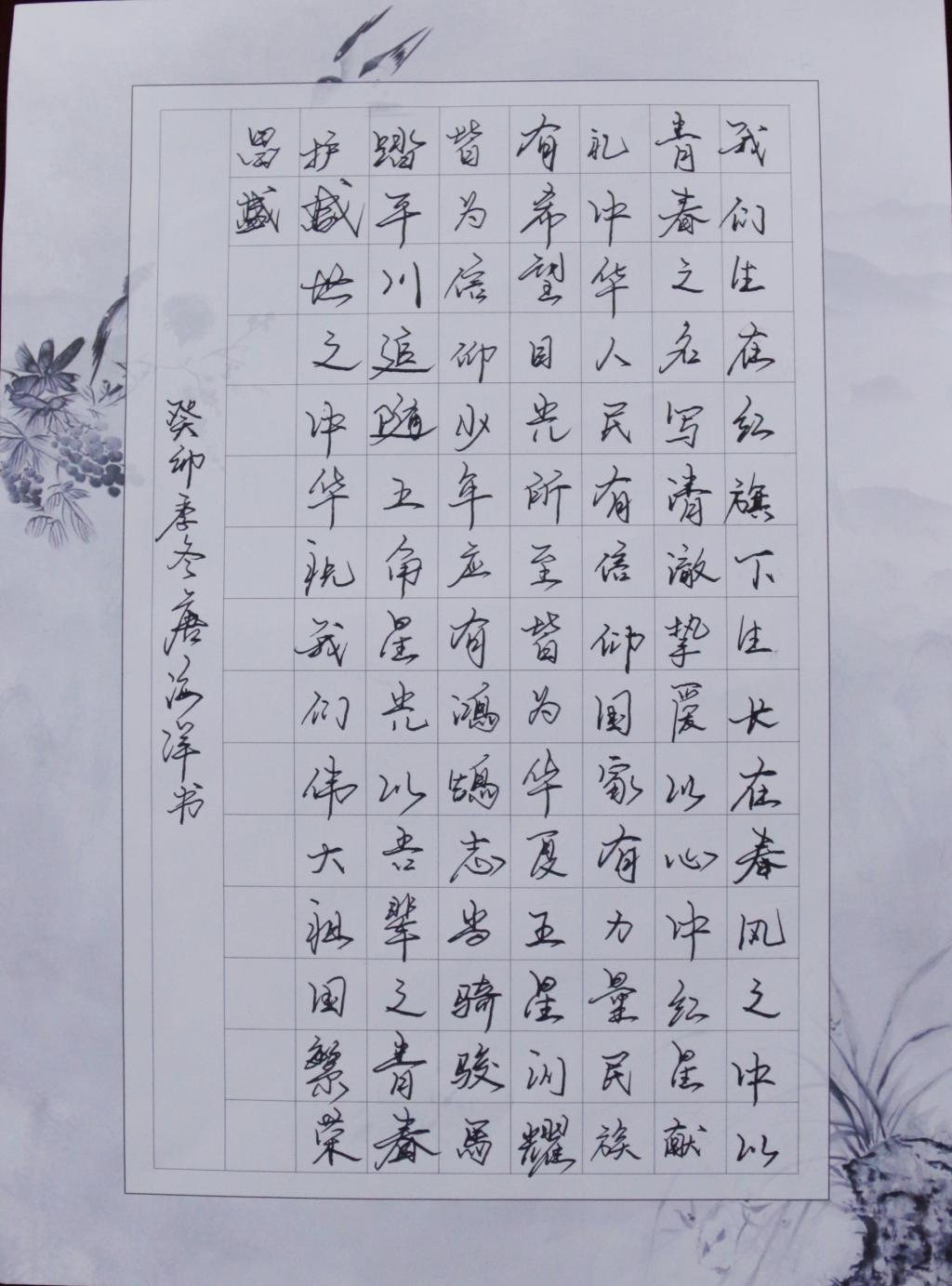 此次由林学系两委会举办的“翰墨书香”硬笔书法活动圆满结束。这次活动充分发扬中华民族优良传统,为广大书法爱好者提供一个交流切磋的平台,也进一步推进了校园文艺活动的蓬勃发展,让同学们在书法艺术中体味千年文化,为美好的大学生活描下绚烂一笔。