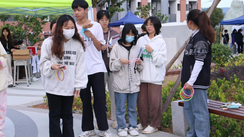 为了更好的调节情绪,本次活动还设置套圈小游戏。通过参与游戏来分散注意力,达到缓解情绪的目的,促进心理健康的发展。