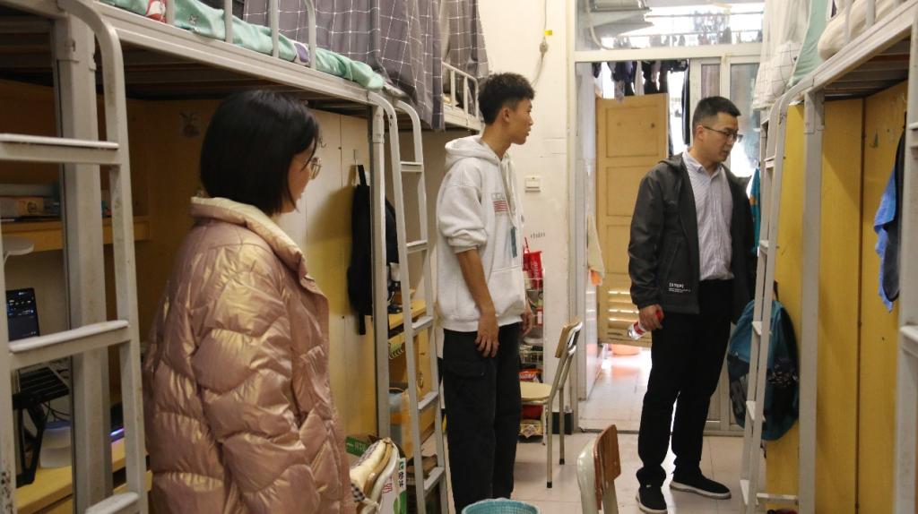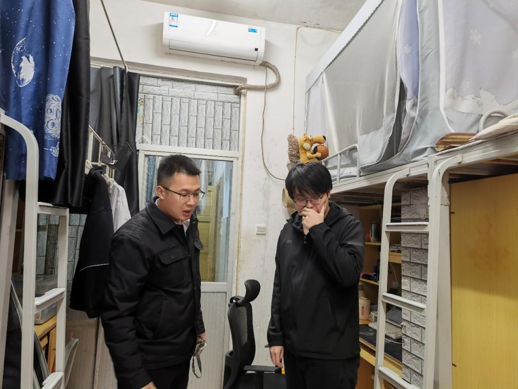 在走访过程中,傅成杰老师与同学们进行了亲切交流,了解同学们近期的学习、生活情况,提醒同学们冬季是火灾多发期,不要在宿舍存放易燃物品,不使用三无劣质插板,不使用高功率电器,不私拉电线,电器使用后及时断电,不向陌生人转账等。发现宿舍安全问题及时上报,保护人身财产安全。同时傅成杰老师强调了宿舍安全的重要性,提醒同学们要牢记宿舍用电安全,遵守校园规定,共同打造安全、整洁、的宿舍环境。