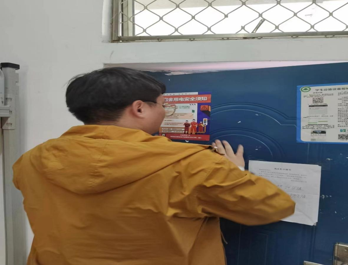 辅导员在安全隐患排查和反诈普及的过程中,重点对存放和使用大功率电器,乱拉电线和占用宿舍走廊安全通道等安全隐患进行了排查,针对出现的问题和故障设备,及时进行了处理和报修,全力维护学生们的生活质量和用电安全。