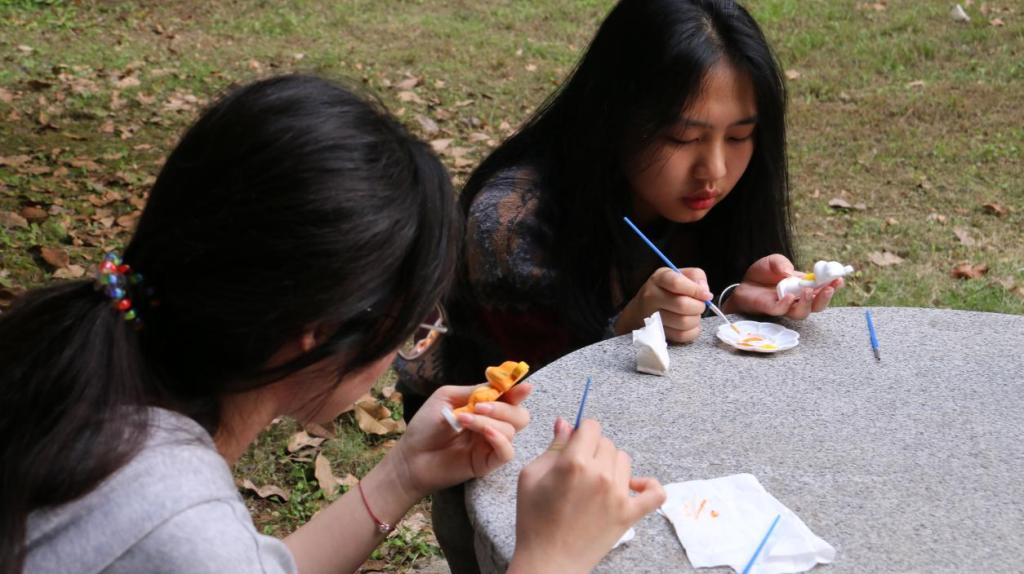 在活动过程中,同学们积极参与石膏绘画,他们发动脑筋、挥动着画笔,一个个白花花的石膏在同学们的笔下变得鲜活起来,仿佛有了生命。