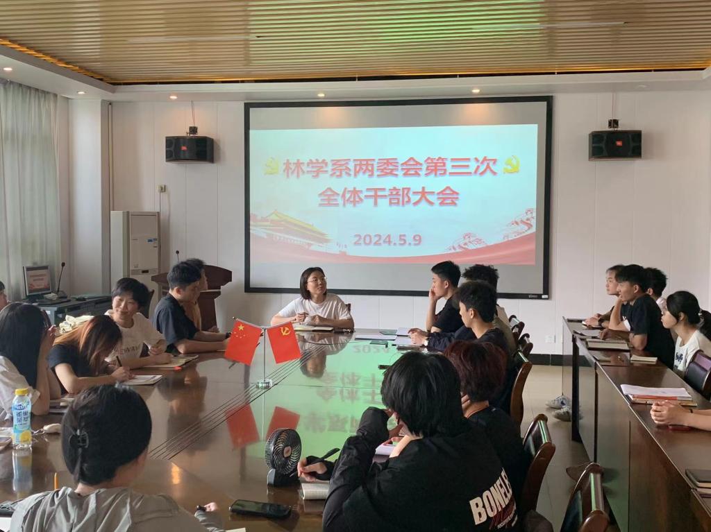 为了加强林学系两委会学生干部队伍的建设与管理,提升学生干部的综合素养、促进学生工作的发展和建设,林学系于2024年5月9日在林学楼会议室召开第三次两委会全体干部大会,林学系学生科长兼团总支书记马艳红主持会议,学生干部负责人参会。