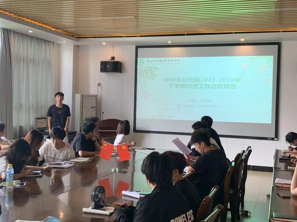 会上,林学系两委会学生干部代表部门对四月份的工作进行汇报,汇报中,学生干部对四月份的工作任务进行了总结,提出了对部门建设的未来规划和意见建议。